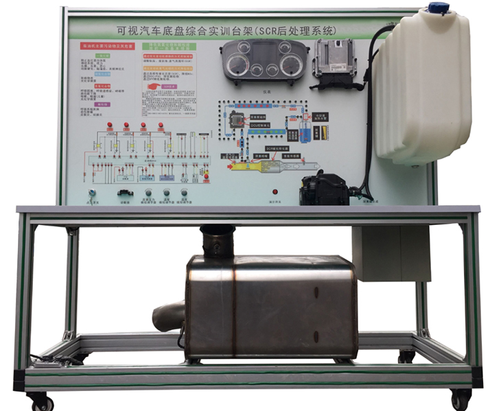 (潍柴)柴油尾气后处理检测维修教学实训设备底座框架采用高强度铝合金型材拼接而成,平台面板采用4mm厚耐腐蚀、耐创击、耐污染、防火、防潮的高级铝塑板,表面经特殊工艺喷涂底漆处理;面板打印有永不褪色的彩色电路图,表面喷涂光油;学生可直观对照电路图,认识和分析控制系统的工作原理;实训台面板上安装有检测端子、可直接在面板上检测电信号,如电阻、电压、电流等。