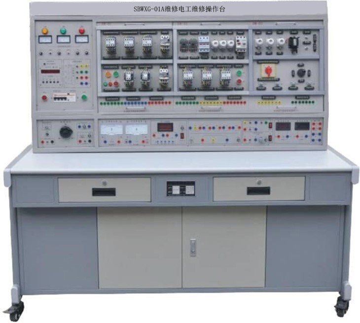 维修电工维修操作台是根据劳动和社会保障部颁发的维修电工初、中级考核培训技能内容所要求的电气控制线路和实用电子线路而研发的实训装置,通过本实训装置的实训操作,能快速掌握该课程的实用技术与操作技能。具有针对性、实用性、科学性和先进性,该装置不仅可供学生实训操作,也是各劳动职业技能鉴定部门、大中专院校、职校、技校初级、中级维修电工技能考核的理想设备。