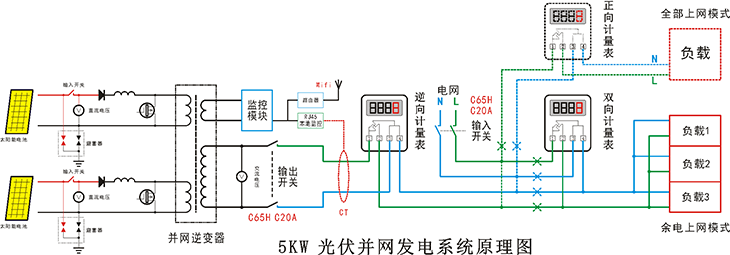 在晴朗的白天,装在屋顶上的光伏组件发出的直流电经过并网逆变器逆变成与电网同频率同相位的单相交流电给负载进行供电,在夜晚或阴雨天等太阳光照不足的情况下,系统处于待机状态,负载用电全部来自电网。您可以通过系统监控软件来实时查看系统的运行状态和故障信息,或者是选配远程通讯数据采集器,将系统工作数据通过GPRS或以太网,传输到您的手机、平板电脑或任意一台联网的电脑,以便于您远程实时掌控电站的信息。