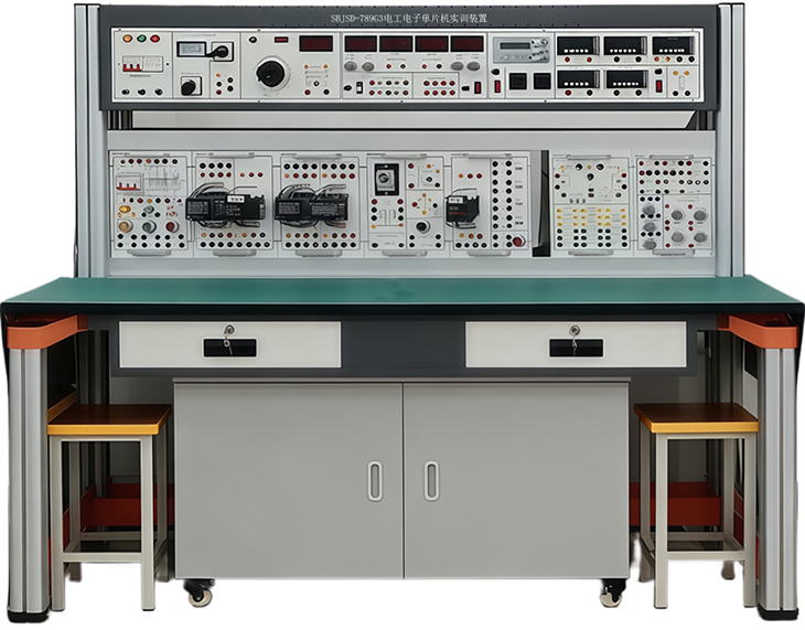 电工电子单片机实训装置、电工电子信息技术实验室包括电工电子实验室设备、单片机实验室设备、电子工艺实训室设备主要承担电子类各专业本科生专业基础实验以及本科生实习实践等教学任务。同时还承担院校相关非电专业的本科生基础电子线路实验教学任务。电工电子单片机实训平台为学生开设有《电路》、《电工学》、《模拟电子技术》、《数字电子技术》、《单片机原理及应用》、《电气控制技术》、《电子系统设计》、多门课程的实验实训。